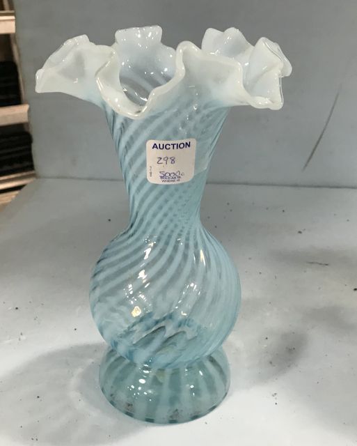 298 Fenton Blue Swirl To Right Fluted Vase