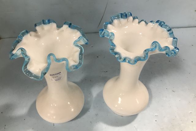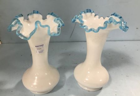 Two Fenton Blue Crest Top Vases, 8"h. Two Fenton Blue Crest Top Vases, 8"h.