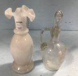 301 Fenton Style Glass Vase and Mary Gregory Pitcher
