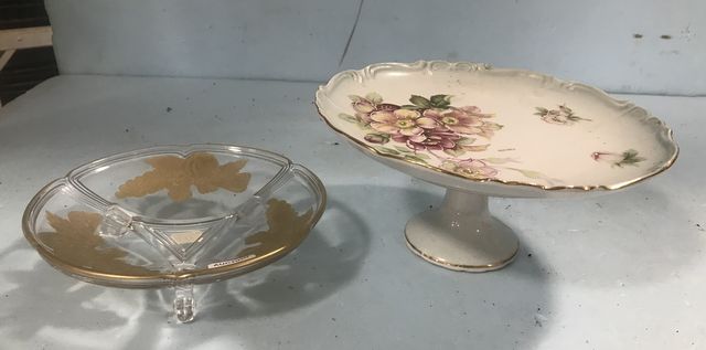 Hand painted and signed, gold fruit on clear glass 7"dia. Hand painted and signed, gold fruit on clear glass 7"dia.