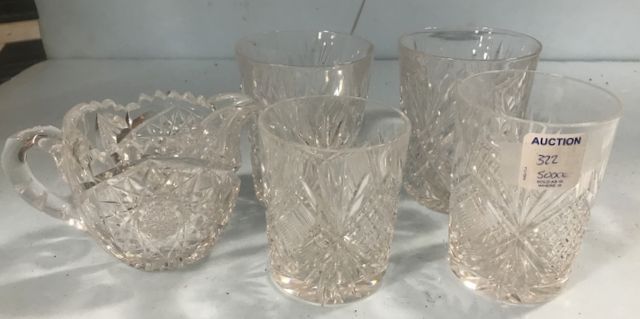 322 Four Cut Glass Glasses and American Brilliant Creamer