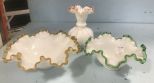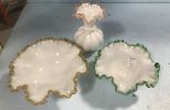 Fenton emerald crest candy dish 6"w., Fenton gold crest rose bowl, Fenton apple blossom crest melon vase. Fenton emerald crest candy dish 6"w., Fenton gold crest rose bowl, Fenton apple blossom crest melon vase.