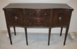 Hepplewhite serpentine front, string inlaid sideboard; 54" w., 20 1/2" d., 35 1/2" h. Hepplewhite serpentine front, string inlaid sideboard; 54" w., 20 1/2" d., 35 1/2" h.