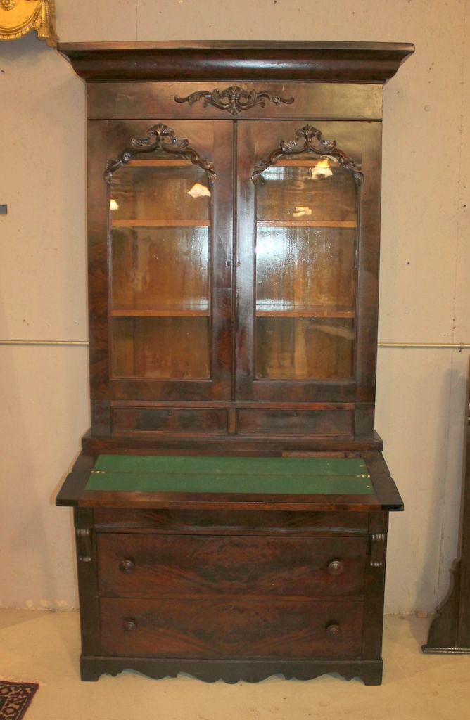 196 Mid 1800s Crotch Mahogany Flip Top Secretary