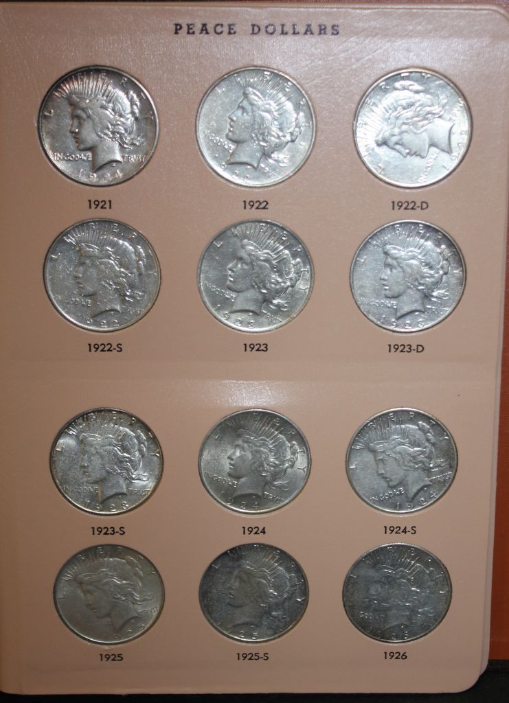 1921-1935 Peace Dollar album which contains 24 Peace dollar coins 1921-1935 Peace Dollar album which contains 24 Peace dollar coins