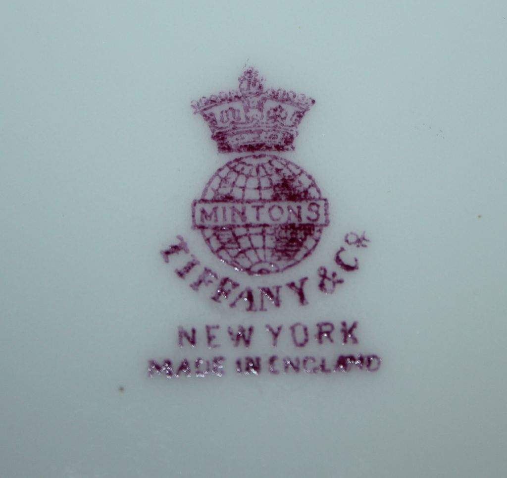 Set of twelve Minton (Made in England) 9" plates, marked on bottom Tiffany & Co. New York (retailer) Set of twelve Minton (Made in England) 9" plates, marked on bottom Tiffany & Co. New York (retailer)