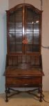 William and Mary style walnut bookcase top secretary (one back leg repaired); 30" w., 18" d., 75" h. William and Mary style walnut bookcase top secretary (one back leg repaired); 30" w., 18" d., 75" h.