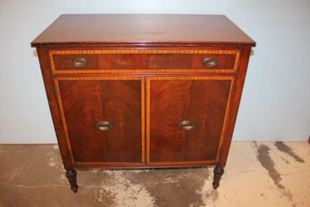 Banded inlaid double door server; 35" w., 18" d., 36" h. Banded inlaid double door server; 35" w., 18" d., 36" h.