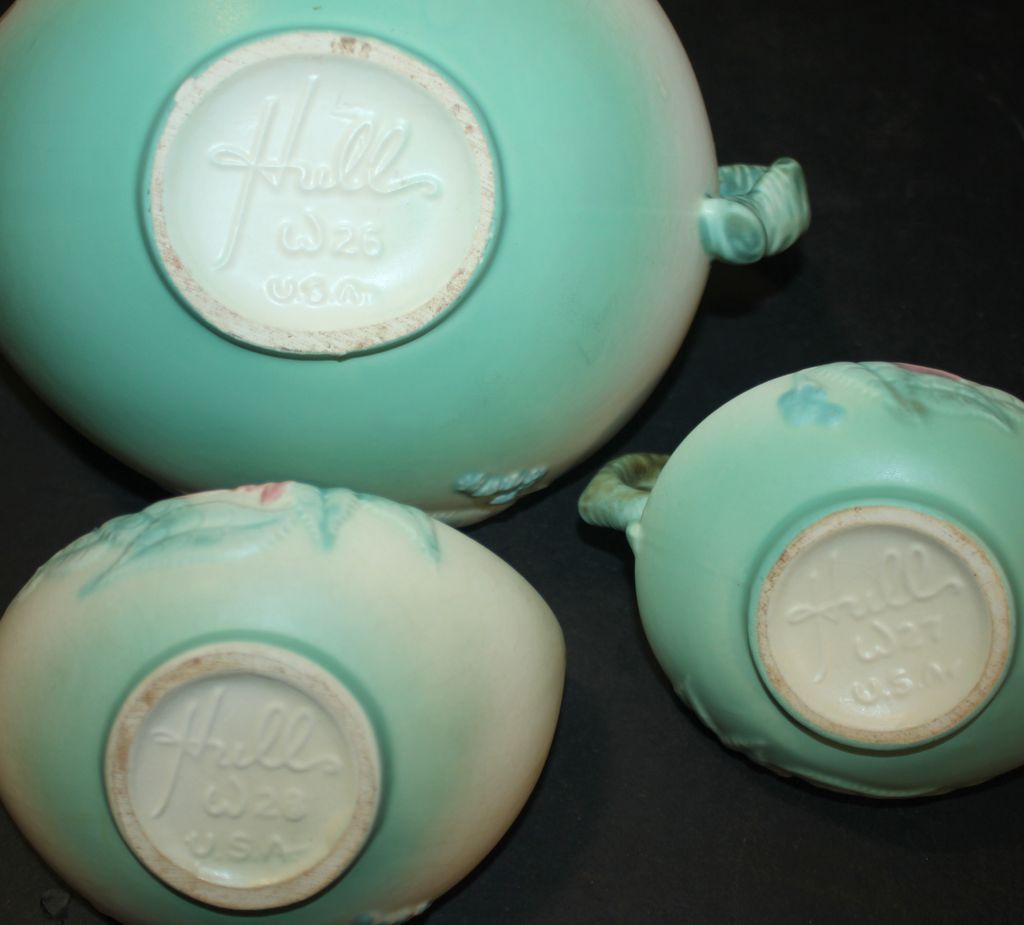 Hull Woodland pattern teapot, creamer, and sugar Hull Woodland pattern teapot, creamer, and sugar