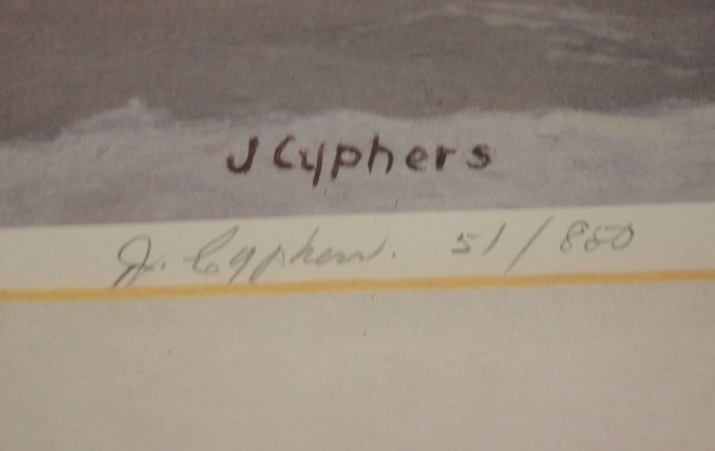 Limited edition print 71/850 of cotton field by J. Cyphers (Port Gibson) 25" w., 21" h., steamboat, Natchez 51/850, 25" w., 21"h. Limited edition print 71/850 of cotton field by J. Cyphers (Port Gibson) 25" w., 21" h., steamboat, Natchez 51/850, 25" w., 21"h.