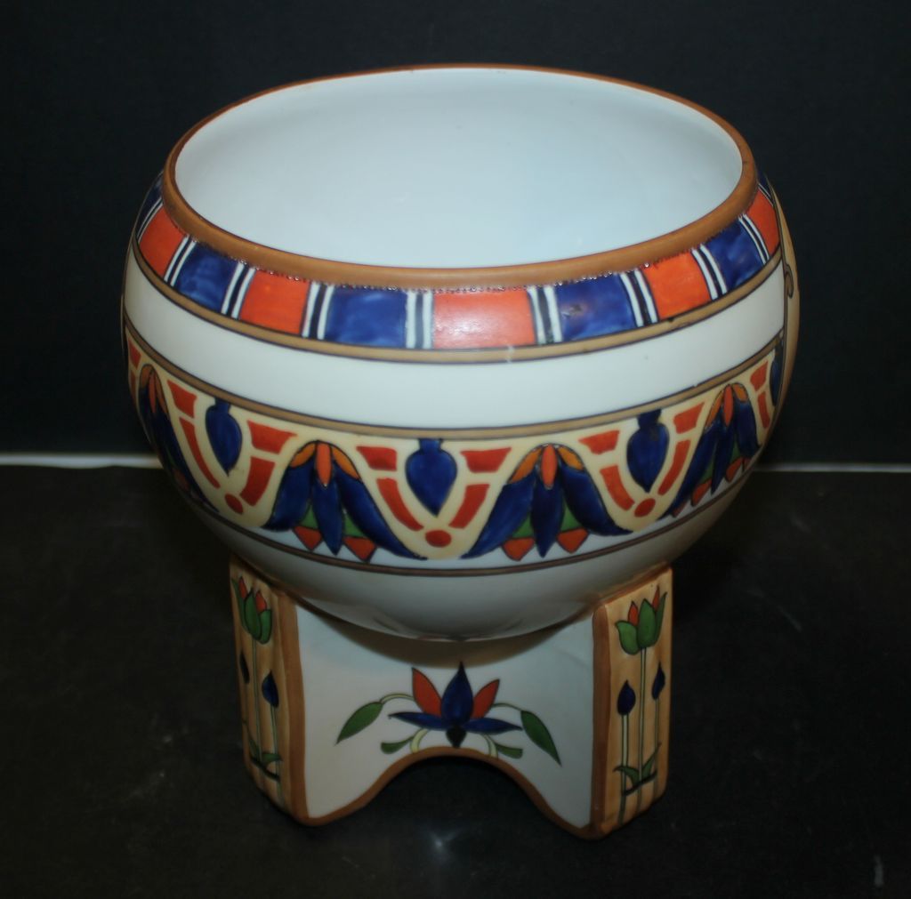 Hand Painted in Egyptian motif, footed Nippon vase; 4 1/2" dia., 6 1/2" h. Hand Painted in Egyptian motif, footed Nippon vase; 4 1/2" dia., 6 1/2" h.