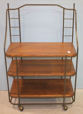 519 Three Tier Wood and Metal Rolling Cart