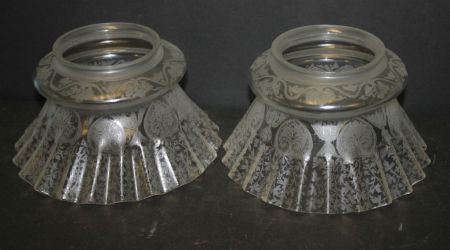 Pair of Victorian highly etched shades for gas chandelier; 3 7/8" base Pair of Victorian highly etched shades for gas chandelier; 3 7/8" base