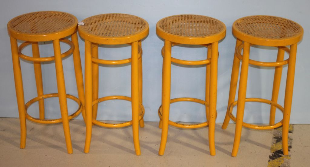 With cane seats; 12" dia., 24" h. With cane seats; 12" dia., 24" h.