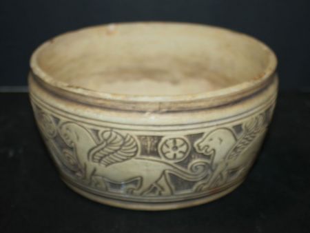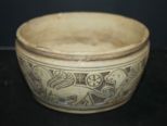 Pottery bowl with border showing walking lions; 7" dia. Pottery bowl with border showing walking lions; 7" dia.
