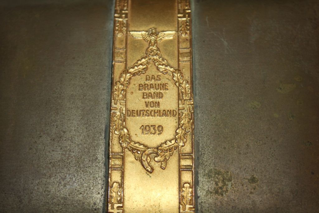 Engraved "Erinnerung An Das Braune Band Von Deutschland 1939", consigner says box was found in Eva Braun's apartment. The box was given to Eva Braun by an SS Nazi officer when her horse won the 1939 Brown Derby. The horse was given to Eva by Hitler. Engraved "Erinnerung An Das Braune Band Von Deutschland 1939", consigner says box was found in Eva Braun's apartment. The box was given to Eva Braun by an SS Nazi officer when her horse won the 1939 Brown Derby. The horse was given to Eva by Hitler.