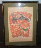Two birds and flowers; 17 1/2" w., 23" h. Two birds and flowers; 17 1/2" w., 23" h.