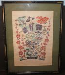 Oriental man and bird; 17 1/2" w., 23" h. Oriental man and bird; 17 1/2" w., 23" h.