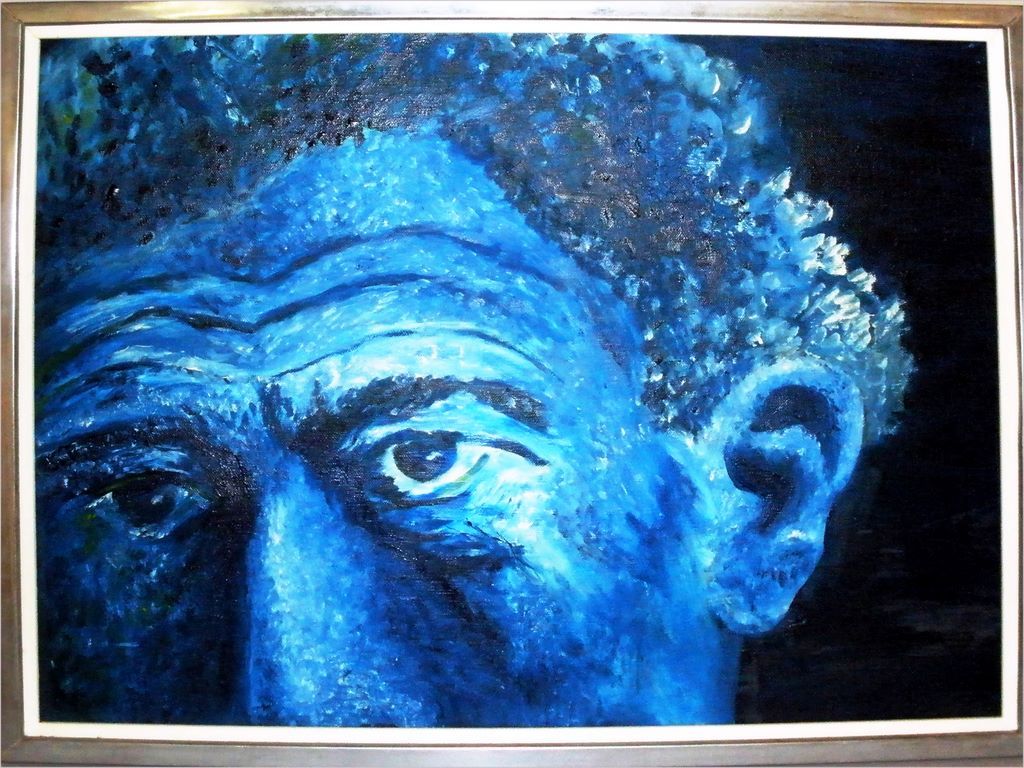 Framed Print. "Blue Man", oil, Chris Walsh, Littleton, NH 1972. 21"w x 17"h Framed Print. "Blue Man", oil, Chris Walsh, Littleton, NH 1972. 21"w x 17"h