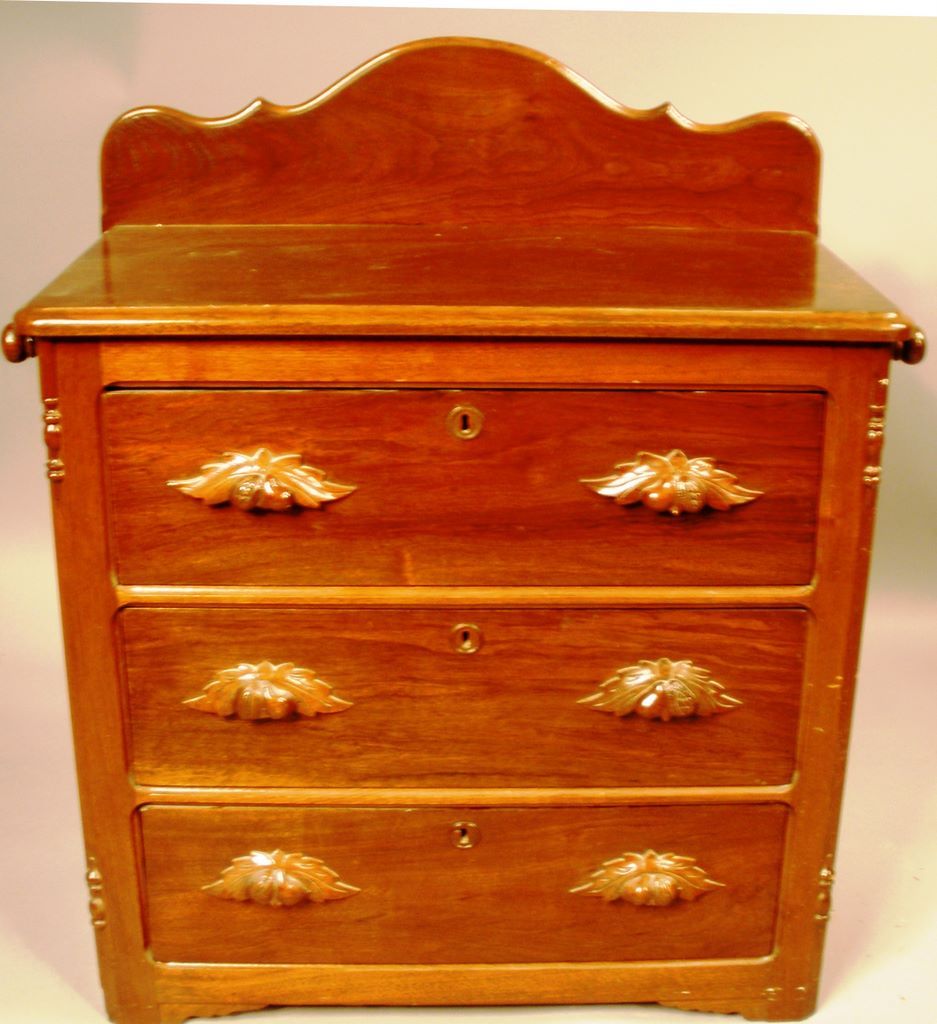Walnut 3-Drawer Victorian Wash Stand with three drawers each having leaf pulls. Cute apron across the back, w. 30", d. 16", h. 36 1/2" Walnut 3-Drawer Victorian Wash Stand with three drawers each having leaf pulls. Cute apron across the back, w. 30", d. 16", h. 36 1/2"