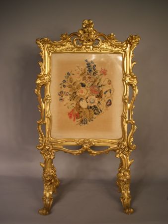 19th Century Gesso/Gilt French Fire screen w/petit point. W. 25 1/2", h. 26", d. 18 1/2" 19th Century Gesso/Gilt French Fire screen w/petit point. W. 25 1/2", h. 26", d. 18 1/2"