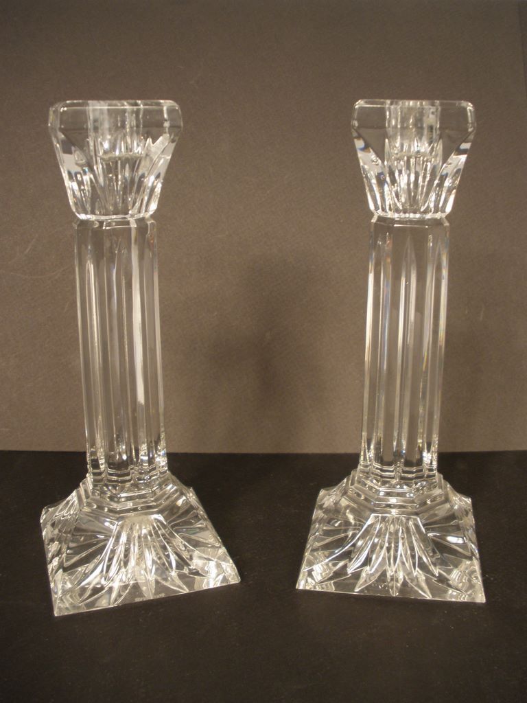 Pair of Column Waterford Crystal Candle Holders, unusual form. 8" crystal candlesticks with 3" base Pair of Column Waterford Crystal Candle Holders, unusual form. 8" crystal candlesticks with 3" base