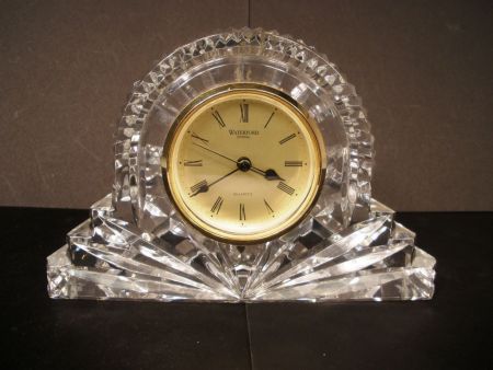 Waterford Crystal Clock. Deco design crystal quartz clock. h. 4 1/2", w. 7" Waterford Crystal Clock. Deco design crystal quartz clock. h. 4 1/2", w. 7"