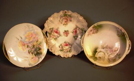296 c1890-1900 Collection of Three German Cake Plates, all w/ Handpainted Roses