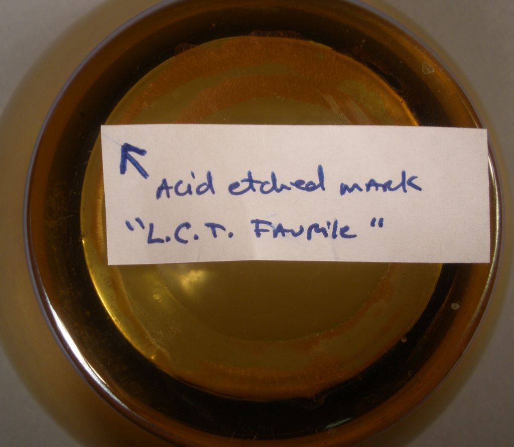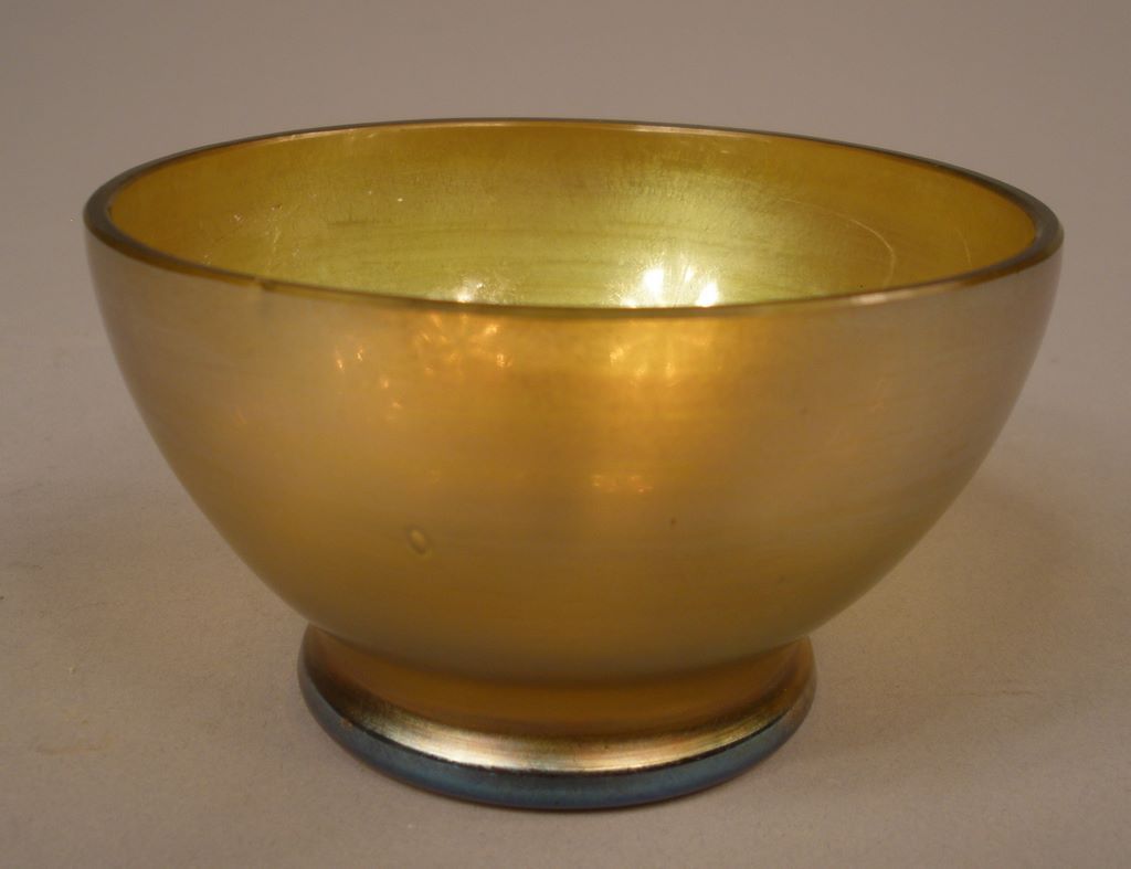 Louis Comfort Tiffany Favrile Gold Iridescent Art Glass Finger Bowl, marked LCT Favrile on bottom. 3 3/4" round x 2 1/4"h Louis Comfort Tiffany Favrile Gold Iridescent Art Glass Finger Bowl, marked LCT Favrile on bottom. 3 3/4" round x 2 1/4"h