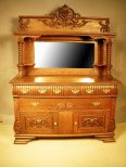 Oak Side Board w/twisted columns, paw feet/beveled glass mirror, top shelf having north wind carving. W. 5', d. 26", h. 7' Oak Side Board w/twisted columns, paw feet/beveled glass mirror, top shelf having north wind carving. W. 5', d. 26", h. 7'