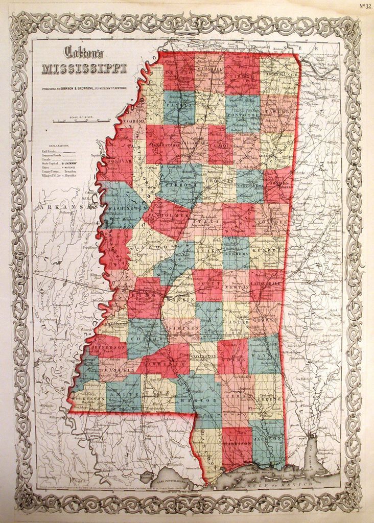 Map of Mississippi, Maker: Colton, 1859. 14" x 11" Map of Mississippi, Maker: Colton, 1859. 14" x 11"