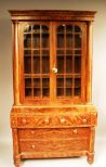 American classical carved mahogany bookcase secretary w/upper case having two glass doors divided into 9 glass panes. Top has columns on each door finished at the top by classical cornice. Base has 2 drawers over 2 single drawers all upon lobed ball feet. 1840's. w. 45", d. 23", h. 7'3" American classical carved mahogany bookcase secretary w/upper case having two glass doors divided into 9 glass panes. Top has columns on each door finished at the top by classical cornice. Base has 2 drawers over 2 single drawers all upon lobed ball feet. 1840's. w. 45", d. 23", h. 7'3"