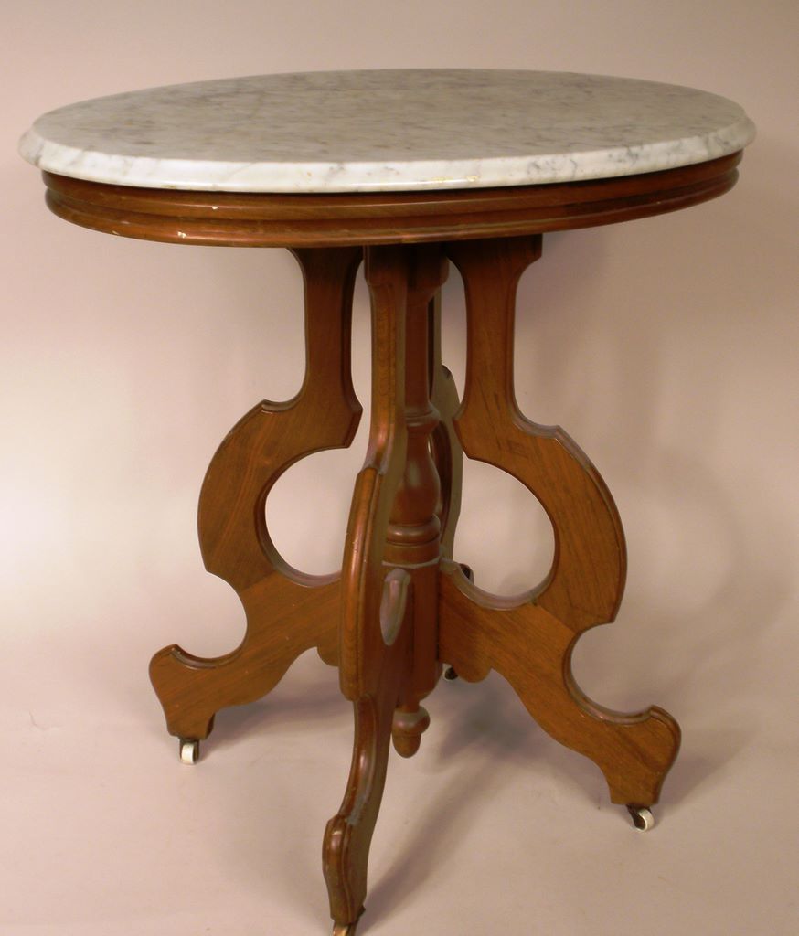 Mid to late 19th century Marble Top Oval Table in original condition. w. 28", d. 20" Mid to late 19th century Marble Top Oval Table in original condition. w. 28", d. 20"