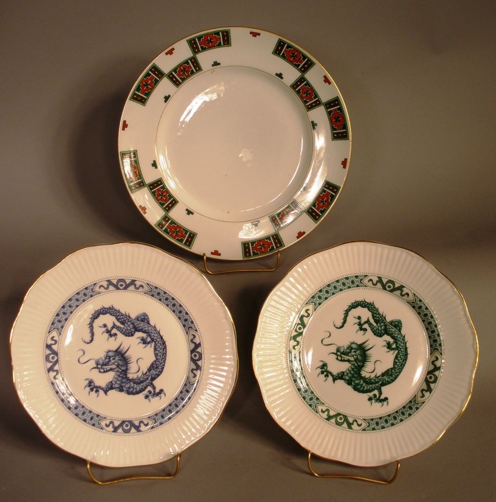 Collection of Three Hand Painted Plates. Russian Dish, 9 1/2"; 2 Rosina Dragon Plates, 6"; Collection of Three Hand Painted Plates. Russian Dish, 9 1/2"; 2 Rosina Dragon Plates, 6";