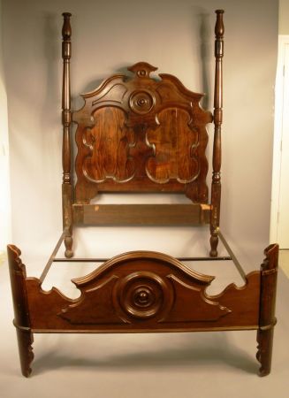 Rosewood Grained High Post-Lincoln Footboard bed, new iron rails to fit queen size mattress. 7'10" tall Rosewood Grained High Post-Lincoln Footboard bed, new iron rails to fit queen size mattress. 7'10" tall