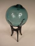 Japanese Fish Net Float, Blown Glass, Green. Found on the Pacific Coast of New Guinea, 1960. The "stand" is the base used to support an old-fashioned wood stove water heater. 20"h x 38" round Japanese Fish Net Float, Blown Glass, Green. Found on the Pacific Coast of New Guinea, 1960. The "stand" is the base used to support an old-fashioned wood stove water heater. 20"h x 38" round