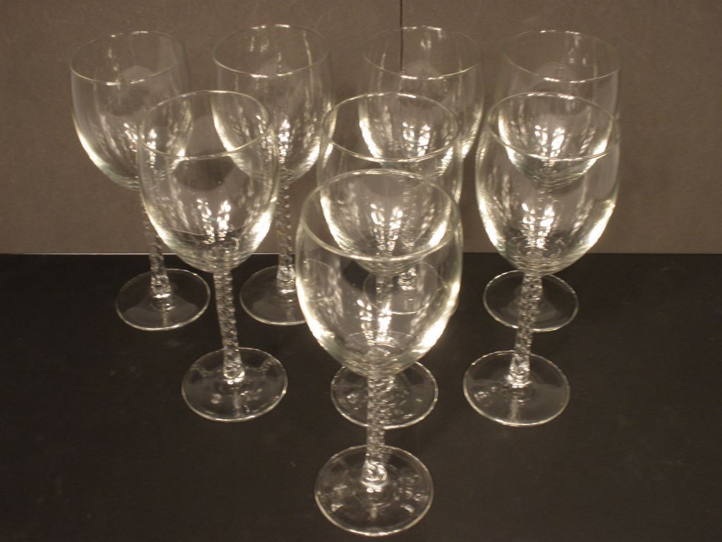 8 Crystal Wine Glasses, each having rope stem 8"h. 8 Crystal Wine Glasses, each having rope stem 8"h.