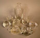 Eight Assorted Items. Old Apothecary Jar, Hand blown; Ground Glass Deco Condiment w/lid; Ground Glass Crystal Ashtray; Orefors Candle Holder; Paperweight; Small Glass Bowl; Turtle Ashtray; Anchor Hocking Glass Eight Assorted Items. Old Apothecary Jar, Hand blown; Ground Glass Deco Condiment w/lid; Ground Glass Crystal Ashtray; Orefors Candle Holder; Paperweight; Small Glass Bowl; Turtle Ashtray; Anchor Hocking Glass
