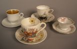 Collection of 4 Cups and Saucers. Bavarian cup 2" & saucer 3", marked Rosenthal; Bareuther demitasse cup 2" & saucer 4 1/2"; Copeland Spode Cup 3" and Saucer 4 1/2"; Royal Staffordshire Cup 2 1/2" & Saucer 5" Collection of 4 Cups and Saucers. Bavarian cup 2" & saucer 3", marked Rosenthal; Bareuther demitasse cup 2" & saucer 4 1/2"; Copeland Spode Cup 3" and Saucer 4 1/2"; Royal Staffordshire Cup 2 1/2" & Saucer 5"