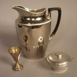 Three Assorted Items. Silver custom Devonware Pot, 7"h; German US Zone Drum Pot; Sterling Silver Cup Three Assorted Items. Silver custom Devonware Pot, 7"h; German US Zone Drum Pot; Sterling Silver Cup