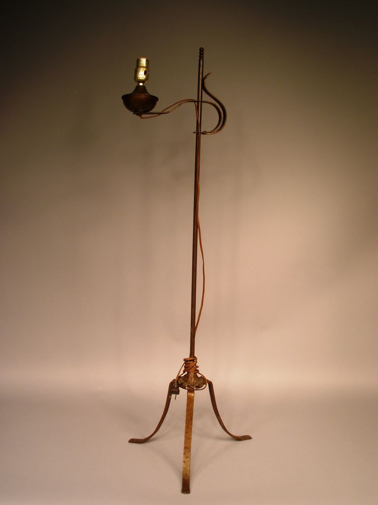 Arts and Crafts Bronze Floor Lamp w/tripod base attributed to Limberts. Glass Shade missing, 44 1/4"h Arts and Crafts Bronze Floor Lamp w/tripod base attributed to Limberts. Glass Shade missing, 44 1/4"h