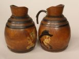 Pair of 18 Century English Treenware Vessels with carved and painted portraits. Handle Missing on one. 5.5" h., 4" w. Pair of 18 Century English Treenware Vessels with carved and painted portraits. Handle Missing on one. 5.5" h., 4" w.