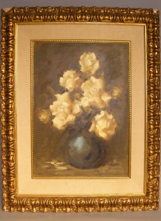 Leon Franks Yellow Roses in Blue Vase. SIGNED Lower Right, Oil on Canvas, 16x20 Canvas in 26x30 Frame. Leon Franks Yellow Roses in Blue Vase. SIGNED Lower Right, Oil on Canvas, 16x20 Canvas in 26x30 Frame.