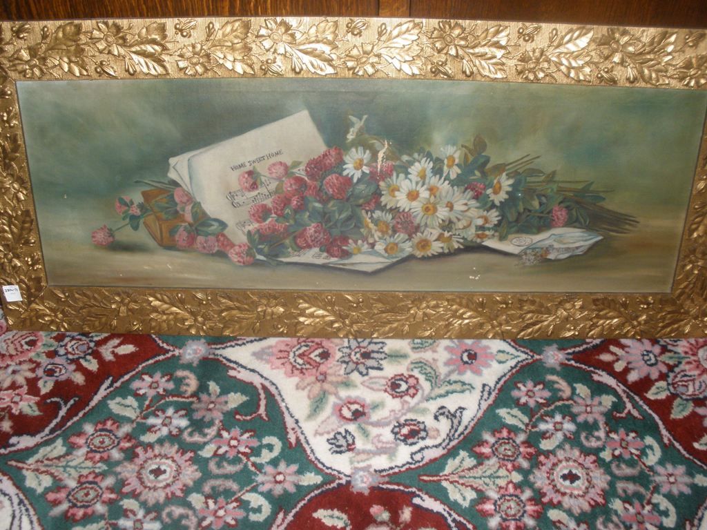 705B Beautifully Gold Framed Picture of Flowers and Music Sheet