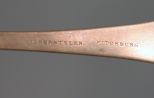 Four Coin Silver Spoons, two 8 1/2" coin serving spoons marked Coin, Wiber & Tyler Fitchburg (Tyler was active in Main 1834-1838) Both monogrammed EMB , inside engraving. Two coin silver spoons 9" marked Cornell for Walter Cornell Rhode Island 1780. Four Coin Silver Spoons, two 8 1/2" coin serving spoons marked Coin, Wiber & Tyler Fitchburg (Tyler was active in Main 1834-1838) Both monogrammed EMB , inside engraving. Two coin silver spoons 9" marked Cornell for Walter Cornell Rhode Island 1780.