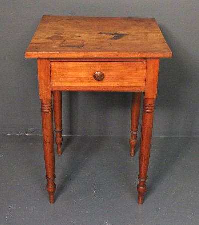 Walnut one drawer stand on Sheraton legs. 20 7/8" w., 20" d., 29 1/2" h. Walnut one drawer stand on Sheraton legs. 20 7/8" w., 20" d., 29 1/2" h.