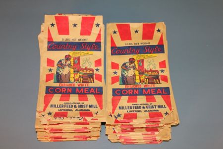Muller Feed and Grist Mill Cornmeal Bags, approximately 250 vintage 5 lb. paper bags. 15" w., 8" h. Muller Feed and Grist Mill Cornmeal Bags, approximately 250 vintage 5 lb. paper bags. 15" w., 8" h.