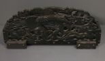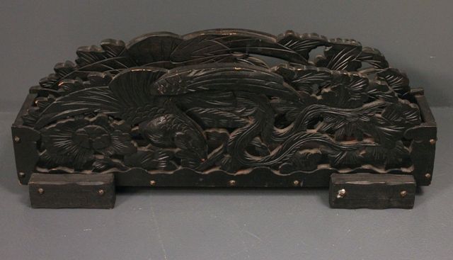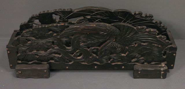Screen Holder for Bi-Panel Screen to hold it flat. Solid teak with ebonoxed finish. 29" w., 6" d., 10" h. Screen Holder for Bi-Panel Screen to hold it flat. Solid teak with ebonoxed finish. 29" w., 6" d., 10" h.