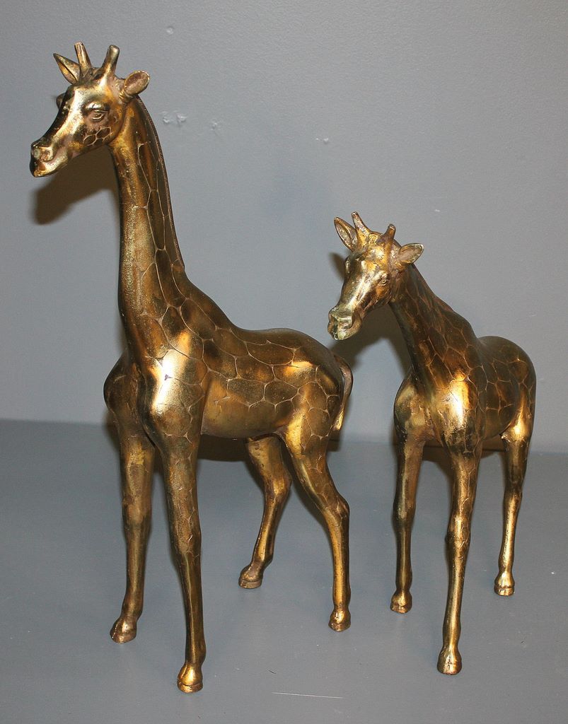 Two Burnished Reticulated Brass Giraffes; cast in brass with detailed finish. Very unique giraffe duo, one (18 1/2"), one (23 1/2" ) Two Burnished Reticulated Brass Giraffes; cast in brass with detailed finish. Very unique giraffe duo, one (18 1/2"), one (23 1/2" )