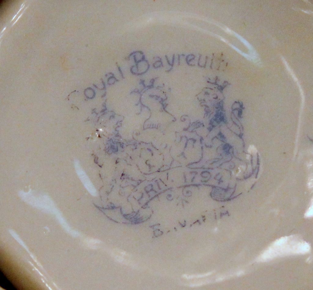 Two Royal Bayreuth Porcelain Pieces; small rose tapestry blue mark vase, roses ( 4 1/4" h.) rose tapestry blue mark hat pin holder (4 1/2" h.) Two Royal Bayreuth Porcelain Pieces; small rose tapestry blue mark vase, roses ( 4 1/4" h.) rose tapestry blue mark hat pin holder (4 1/2" h.)
